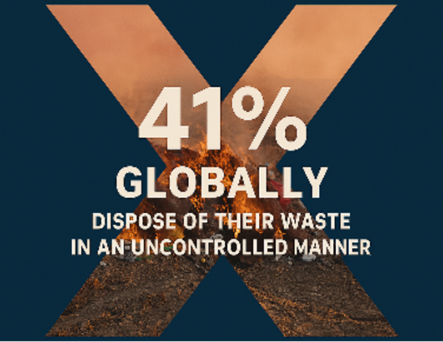 41% of households globally manage their waste in an uncontrolled manner, either openly dumping or burning (Gallup and LRF, World Risk Poll, 2024)